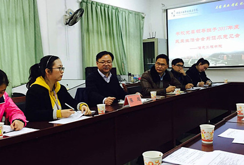 本网讯 1月18日下午,校党委副书记陈超来到信息工程学院,就学校党委领导班子2017年度党员领导干部民主生活会征求大家意见建议。学院部分教研室主任、支部书记、专业教师代表、辅导员代表参加了会议。会议由信息工程学院党总支副书记彭伟主持。