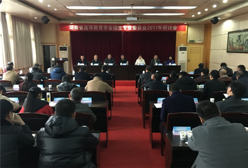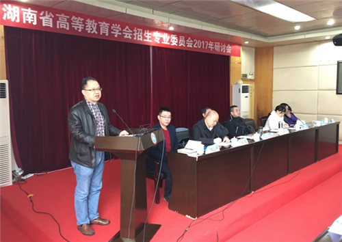 本网讯 12月15日,湖南省高等教育学会招生专业委员会2017年研讨会在娄底举行。湖南省高等教育学会招生专业委员会名誉理事长詹小平,湖南省高等教育学会招生专业委员会理事长吴德平,湖南省高等教育学会招生专业委员会秘书长黄权出席此次大会,来自湖南省考试院,全省30所高职院校和各市州教育考试院的60多名专家、领导参加大会。我校招生就业处处长孟正文应邀参加会议,并做交流发言。