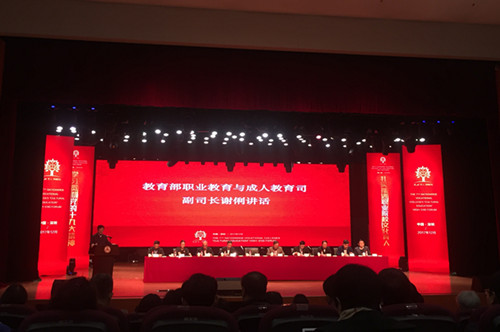 陈秋明在致辞中指出,党的十九大精神对职业院校文化建设、人才培养提出了更高的要求:一是职业院校要大力弘扬新时代中国特色社会主义文化,增强文化自觉,强化文化担当;二是职业院校大力弘扬“工匠精神”,铸造更多“大国工匠”;三是职业院校完善职业教育与培训体系,深化产教融合、校企合作。