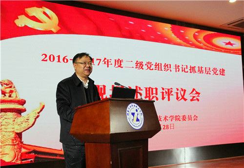 为进一步加强学校基层党组织建设,推进“两学一做”学习教育常态化制度化,增强基层党组织书记的管党意识,落实管党责任,推动形成一级抓一级、层层抓落实的党建工作格局,学校党委根据省委教育工委《关于做好 2017 年度全省高校院系级党组织书记抓基层党建述职评议考核工作的通知》(湘教工委通〔2017〕67号)文件精神,研究决定开展2016-2017年度二级基层党组织书记抓基层党建工作述职评议考核工作,并提出了明确要求,做出了周密的部署。在现场述职评议会前,各二级党组织书记认真撰写了述职报告、制作了汇报PPT,学校已组织两个现场调查组对各二级党组织的党建工作进行了现场材料核查。
