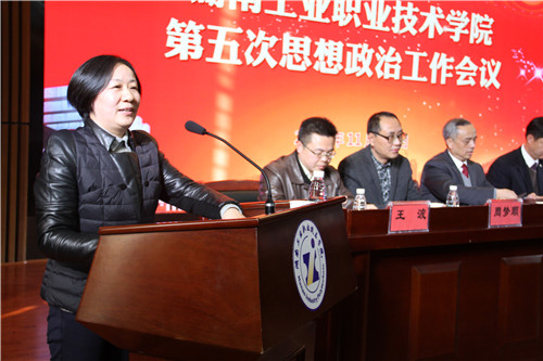 刘建湘指出,加强和改进思想政治工作是坚持社会主义办学方向的根本要求,是破解思想政治工作面临的新形势新挑战的迫切需要,也是建设中国特色高水平职业院校的重要保障。刘建湘强调,要通过突出理想信念教育和价值引领,着力提升师生思想政治素质;实施思想课程与课程思政创新改革,着力形成课程育人合力;加强教师思想政治工作,着重培养“四有”好老师;推进卓越工业文化建设,着力营造以文化人以文育人良好环境;开展思想政治工作改革创新,着力提升思想政治工作的成效;配齐建强思想政治工作队伍,着力构建思想政治全员育人格局;加强和改善党对思想政治工作的领导,着力推动思想政治各项任务落地生效,促进学校思想政治和各项工作上台阶上水平,为建设中国特色高水平职业院校作出积极贡献。