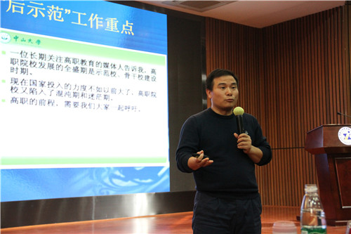 中国青年报教育科学部副主任、职业教育版主编梁国胜作《高职话语权和优质高职建设思考》专题讲座