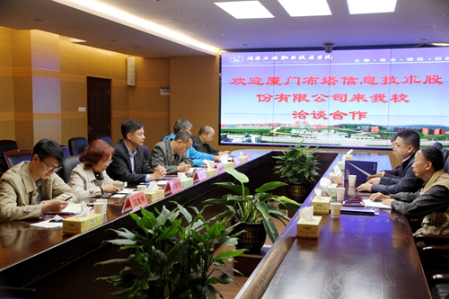 本网讯 11月2日上午,厦门布塔信息技术有限公司副总经理陈军利、项目总监黄安乐和布塔学院院长鲁刚一行来校,就校企合作进行洽谈。