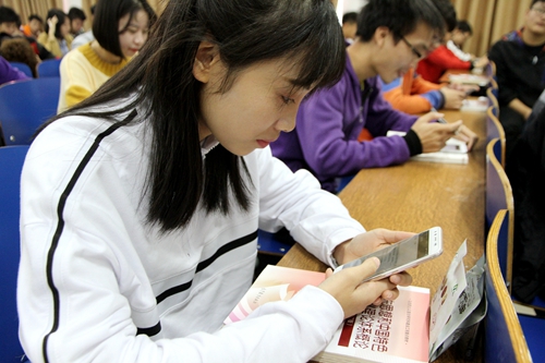 本网讯 课堂上,学生个个埋头看手机,神情严肃认真。30分钟后,大家集体放下手机,展开了热烈讨论。11月2日,在数控2016-1班的思政课堂上,发生了这样有趣的一幕。原来,这是我校思政部利用手机APP软件,为学生精心准备组织的“十九大报告知识测试”。