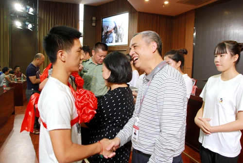 副校长邓建国代表全校师生向积极应征入伍的新兵同志表示热烈祝贺,向积极送子参军的家长致以崇高敬意,向参与新兵的工作人员表示衷心感谢。他希望新兵们不父母养育恩,在未来的军旅生涯要加强学习,提高政治素质;要牢记使命,努力拼搏,严守纪律,争做“优秀士兵”,把工业职院人艰苦奋斗、自强不息的精神带到部队去,让工业职院精神在军营闪光,为母校增光添彩。