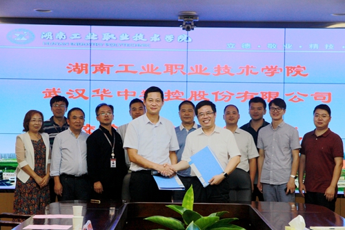 本网讯 9月7日下午,我校与武汉华中数控股份有限公司签订校企合作协议。双方将通过共建华中数控学院,共同打造智能制造产教融合和军民融合应用技术协同创新平台,培养智能制造领域的技术技能型人才,服务长株潭衡《中国制造2025》试点示范城市群建设和“一带一路”战略发展。