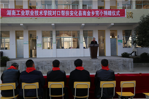 乡长刘金山在现场致辞中指出,安化是一个人杰地灵的地方,但是由于经济历史等原因,安化的教育事业还欠发达,需要社会各界的支持和各级政府的努力,电子pg游戏平台下载情系安化教育事业、心系南金乡中心学校师生是对安化教育事业的鼓励和鞭策。他表示将加大对全乡教育的关心和投入,努力提升南金教育教学质量,号召南金完小同学们将工业职院的关爱化作勤奋学习、立志成才的强大动力,用优异的成绩来回报社会、政府的关心和关爱。