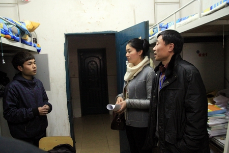 党委副书记周立华与学生工作处、团委相关负责人及各系总支书记分头来到各个班级寝室与学生展开交流,检查学生公寓环境,询问假期生活和社会实践情况,对学生思想动态进行深入了解。同学们对老师们的到来一点也不感到陌生或惊讶,领导干部、辅导员、老师下寝室走访显然已成为我院的常规学管工作。