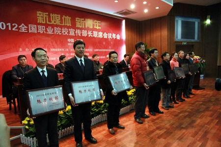 乔建宾就魅力校园推荐情况作了简单介绍后,宣布了2012年30所全国职业院校魅力校园的获奖名单。北京电子科技职业学院、湖南交通职业学院等学院获得了2012年“全国职业院校美魅力校园”,与会嘉宾为获奖院校进行了颁奖。