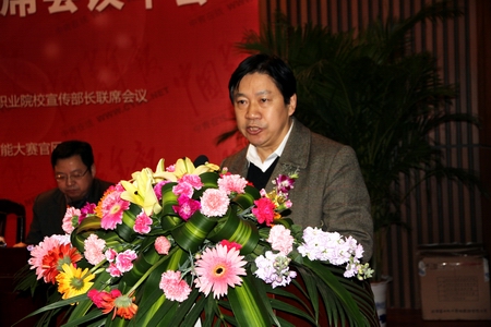 龙承海代表承办方讲话,对此次年会的召开表示衷心的祝贺,对我院概况做了简单介绍,特别指出我院2011年被评为“全国魅力校园”和“全国最具就业竞争力的高职院校”,2012年学院获“全国黄炎培职业教育优秀学校奖”,并表示我院将借助此次年会契机与各兄弟院校加大交流,坚持以“十八大精神”为指导,共同努力,做好学院各项工作,充实校园文化,构建和谐美丽校园。