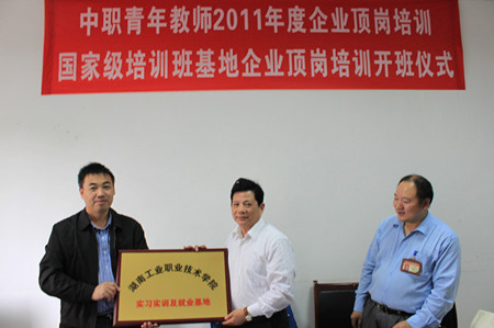 董建国代表学院向湘电公司授予“电子pg游戏平台下载实习实训及就业基地”牌匾