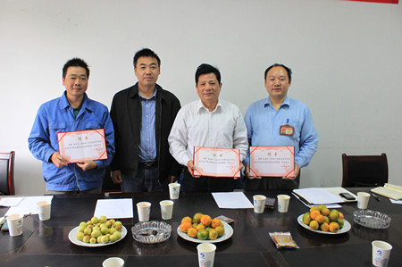 学院副院长董建国代表学院向湘电公司技术骨干颁发“电子pg游戏平台下载校外实习实训基地企业指导教师”聘书