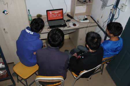 课间,各办公室内,没有课的老师三五成群的围坐在电脑周围,观看十八大的现场直播。学生们则利用寝室电脑和教室收音设备围坐一团,收听、观看盛会直播。