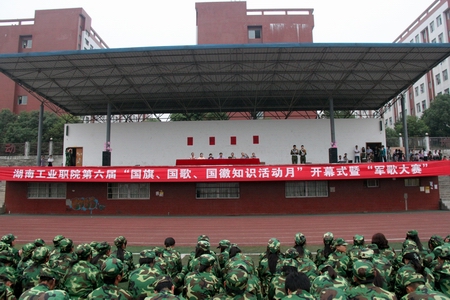 9月20日晚,由院团委主办、国旗礼仪队承办的第六届“国旗、国歌、国徽知识活动月”开幕式暨军歌大赛在我院田径场隆重举行。到会的嘉宾有学生工作处处长、院团委书记苗治田,院团委副书记黄敏,及各(院)系团总支书记。我院2012级全体新生、辅导员以及军训团全体教官参加了此次活动。