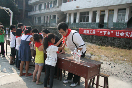 8月23日至27日,我院“三下乡”志愿者服务队奔赴安化县江南镇洞市村展开了为期5天的暑期社会实践活动。30名志愿者在此期间通过义务维修、爱心捐赠、社会调研等多种形式,勇敢担当起大学生的社会责任,深入了解社会实际、积极传播科学文化知识,为当地百姓带来了爱和希望。