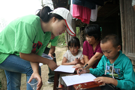了解到留守儿童中,有四户特困学生,志愿者们兵分两路,头顶烈日,长途跋涉近两个小时山路,走访了洞市村五户特困家庭,并为他们送上了慰问金及学习用品。