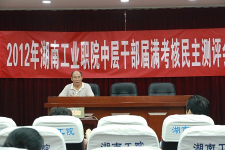 根据《湖南工业职院2012年中层干部届满调整和聘任工作实施方案》(湖南工院党字[2012]22号)安排,7月5日,学院召开了中层干部届满考核民主测评会议。学院党委书记龙承海、院长刘建湘等院领导以及全体中层干部、相关系部的教职工参加了会议,会议由刘继平副院长主持。