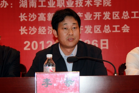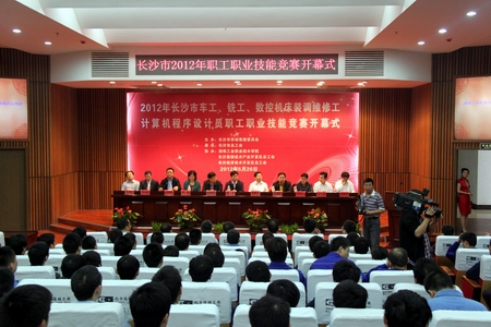 5月26日上午,长沙市2012年职工职业技能竞赛在我院多功能报告厅隆重开幕。湖南省总工会副主席李挚、长沙市人民政府副市长何寄华、省人社厅职业能力建设处处长宋宏、省总工会生产保护部部长彭晛丹、省职业技能鉴定中心主任李日新、省总工会技协办主任夏忠宏、市总工会副主席肖新田、共青团长沙市委纪检组长王海军、我院党委书记龙承海、院长刘建湘、副院长董建国、院工会主席张志勇等出席开幕式,省职业技能鉴定中心、相关市直单位的工作人员、参赛选手、裁判和多家新闻媒体记者参加了开幕式。开幕式由市总工会党组书记、副主席彭惊雷主持。