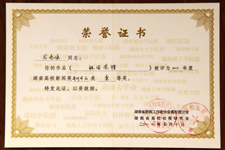 近日,由湖南省新闻工作者协会高校校报分会、湖南省高校校报研究会组织的“2011年度湖南省高校校报好新闻”评选揭晓。我院选送的15件作品13件获奖。