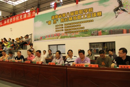 5月7日下午,由湖南省高职教育体育教学研究会主办、我院承办的湖南省第八届高职学院“嘉杰”院长杯教职工篮球赛在我院体育训练馆隆重开幕。