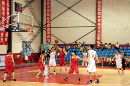 5月9日下午,由院长刘建湘带领的我院教职工代表队与长沙职院鏖战四节,最终我院以125比115险胜,成功晋级八强。在此战中我院内线球员稳稳守住了禁区,外线球员犀利的突破冲垮了对方的防线,其中刘建湘院长得到20分,包括拿下第三节最后几秒关键的超远3分。