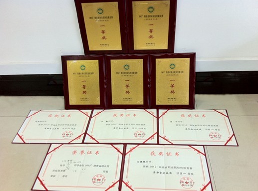 我院经济管理系各派出一支代表队参加了这两项比赛。我院代表队以扎实的专业技能和良好的团队合作精神,力压群雄,喜获佳绩。其中,会计电算化专业2010级学生文健璇、向梓菡、汤怡、江静四位选手以总分第一名的成绩获得湖南省职业院校技能竞赛(高职组)会计技能大赛团体一等奖,四位选手全部获得个人一等奖,其中江静同学以156.16分的好成绩获得个人一等奖第一名。物流管理专业学生郭孔敏、史卫、刘美佳三位选手组成的代表队以总分第三名的成绩获得湖南省职业院校技能竞赛(高职组)现代物流储存与配送作业优化设计和实施项目团体二等奖。