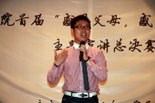 获得一等奖的蒋宗街代表获奖者们发表了获奖感言,他说:“感恩其实是无处不在的,在我们生活中它是永恒的话题。‘羔羊跪乳,乌鸦反哺’,我们要学会感恩、懂得感恩,也要学会热爱生活。拥有一颗感恩的心,我们将会感受到更多的快乐。”