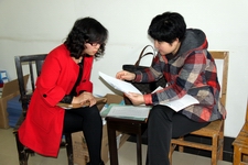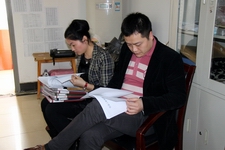 考评组人员查看资料并与相应辅导员交流