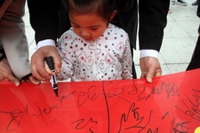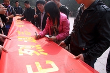 随后,全体同学进行了默哀,向烈士墓献上鲜花,并拉开“继承先烈遗志,争当时代先锋”的横幅,邀请前来瞻仰烈士的市民们进行了签名活动。