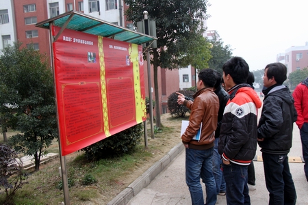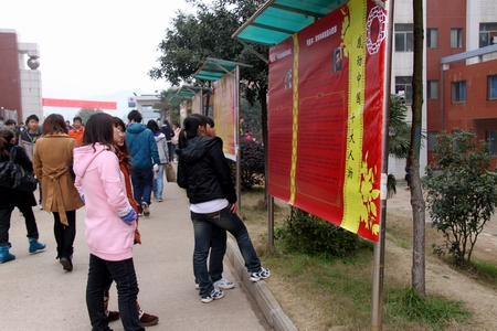 近日,我院学生公寓道路两侧的宣传栏吸引了众多同学驻足关注。宣传栏的内容涵盖了对雷锋精神的阐述,湖南科技大学何平、吴立强、李进三位大学生、以及感动中国2012十大人物的感人事迹介绍。同学们无不为之动容,边看边讨论,不少同学在接受学生记者采访时表示,自己要深入学习这些榜样人物的高尚道德品质、勇于担当的强烈责任意识、乐观进取的积极人生态度和追求卓越的顽强拼搏精神,将这些精神融入到平常的学习、生活、工作中去,做一个服务同学、奉献校园、奉献社会的人。