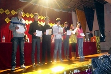 随后,夏蓉同学代表该系获奖人员讲话,荆兴同学宣读了积极投身第五届“校园风采”文化艺术节的倡议书。