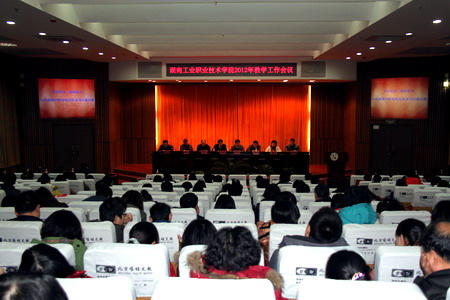 刘继平副院长代表学院作了题为《夯实质量 熔炼内涵 努力开创教育教学工作新局面》的主题报告,报告全面总结和回顾了我院2011年教育教学建设和改革工作,认真剖析了当前教学工作中存在的不足和问题,提出了今后一个时期学院将以改革创新为动力,以各级各类重点项目建设为主线,以校企合作体制机制建设为先导,以人才培养模式改革为重心,以打造品牌专业为载体,以资源整合为手段,着力夯实人才培养质量,全面增强学院的发展内涵,为湖南经济社会发展提供持续的人力资源支持和坚强的智力保障。