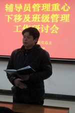 会上,各位老师围绕辅导员工作管理中心下移和班级建设两个主题、结合自身工作实际各抒己见,提出了不少建设性的观点。老师们指出,辅导员工作管理重心下移,既要在形式上进行管理重心的下移,如管理地点更多的下移到教室与寝室、管理时间更多的从课堂内转移到课堂外,也要在内容上进行管理重心下移,如从注重产生问题的表象转移到注重产生问题的根源与实质。围绕班级建设,不少老师提出要利用大一关键时段,引导学生树立可行的目标,并对学生考勤从严管理,实行将操行评定与学生考核挂钩的加分制管理办法。
