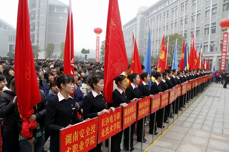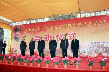 3月1日,我院团委组织学生代表参加了在湖南省第一师范学院举行的湖南省“百万大学生学雷锋志愿服务活动”启动仪式。湖南省委副书记梅克保,省委教育工委书记、省教育厅厅长王柯敏,省委教育工委委员、省教育厅党组成员夏智伦,湖南省第一师范学院党委书记詹小平,湖南省第一师范学院院长彭小奇出席启动仪式,共有38所高校 2300名学生代表参加活动。
