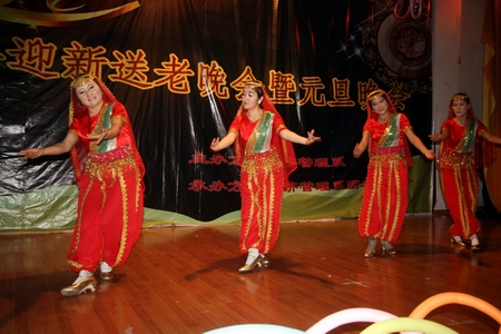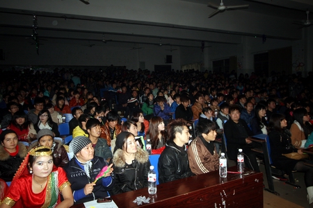 随后,精心设计的乐队开场曲《the dawn》、《滑板男孩》拉开了本次晚会的序幕,现场欢快气氛瞬间升温。由该系来自新疆的同学们带来的《喀什姑娘》让现场掀起了一片浓浓的异域风情;以当今社会热议话题为背景的短剧《恋爱男女》得到了观众们的热烈回应;情歌串烧《天下有情人》、《再见北极雪》、《你最珍贵》让观众大饱耳福,台上台下合唱声、欢呼声连成一片;现代舞《爱的主场秀》震撼全场,诗歌朗诵《我们的纪念》感人肺腑,二胡合奏《绿野仙踪》、《南泥湾》琴声悠扬。节目中间穿插的观众互动游戏《爱的抱抱》、《萝卜蹲》使台上台下欢乐串联,现场欢呼声此起彼伏、气氛火爆。