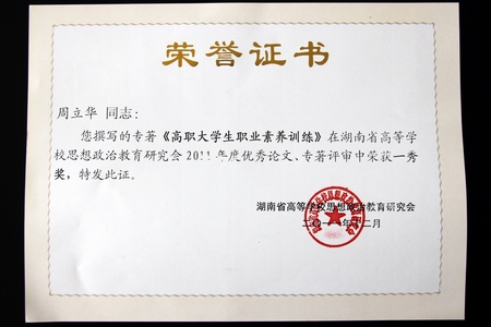 在12月27日召开的湖南省高等学校思想政治教育研究会2011年会上,我院当选为湖南省高等学校思想政治教育研究会第八届常务理事单位并因多项荣誉受到表彰。我院院长刘建湘当选为湖南省高等学校思想政治教育研究会第八届常务理事。与此同时,我院党委副书记周立华撰写的专著《高职大学生职业素养训练》在湖南省高等学校思想政治教育研究会2011年度专著评审中荣获一等奖,院学生工作处被授予“2011年度湖南省高等学校思想政治教育研究先进单位”,电气工程系肖竺老师被授予“2011年度湖南省高等学校思想政治教育研究先进个人”荣誉称号。