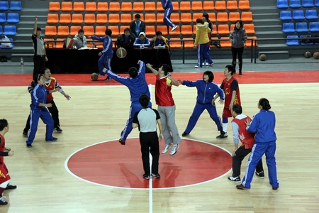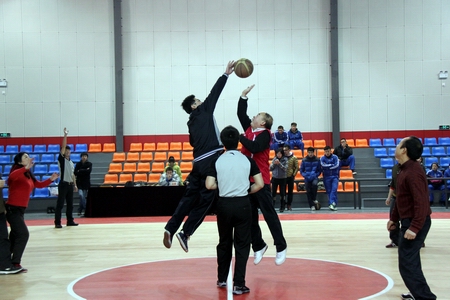 全体党政领导及中层干部们分为由学院院长刘建湘、原党委书记廖洪元分别带队的“院长队”和“书记队”,本着“友谊第一、比赛第二”的原则展开友谊赛。随后,由教育厅领导及我院领导组成的“周末队”与学院女篮队展开较量。场上队员们似乎忘记了馆外呼呼的北风和簌簌飘落的鹅毛大雪,全身心投入、比赛热情高涨,一场球赛下来队员们大汗淋漓、好不痛快。最后,我院女篮姑娘们凭着出色的球技以46比39分赢得比赛。