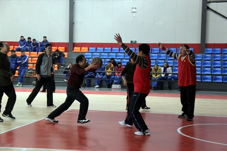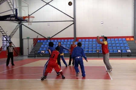 据悉,我院训练馆于2011年七月底开始动工修建,至正式开馆使用耗时近半年时间,全馆占地面积3700平米,分为一个主馆及两个副馆,全面采用钢架结构修建。主馆能容纳500人观看比赛,另配有职工活动室、休息室、乒乓球室、淋浴间等,配套设施齐全,符合国际建设标准,能承接篮球、排球、羽毛球、乒乓球及大型文艺晚会等比赛和活动,为我院今后各类大型活动的举行提供了良好的硬件设施条件。
