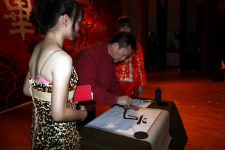 机械工程系主任皮智谋现场书写的书法作品“前程似锦”