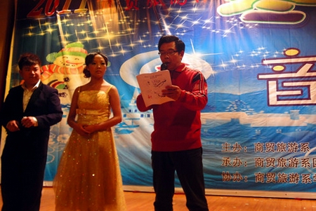 12月21日晚,我院大学生活动中心灯光璀璨,座无虚席,商贸旅游系“2011‘冬之韵’迎新送老晚会”如清雅馥郁的冬日寒梅般傲然盛放于此。晚会由商贸旅游系主办,商贸旅游系团总支承办,商贸旅游系学生会及学生党支部协办。商贸旅游系相关负责人及老师与同学们一起观看了晚会。