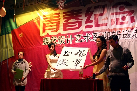 12月23日晚,现代设计艺术系“青春纪念册”迎新送老晚会在大学生活动中心隆重举行。此次晚会由艺术系团总支主办、艺术系学生会承办。现代设计艺术系领导和相关老师一起观看了本次晚会。