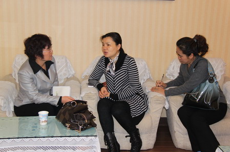 经济管理系主任李蜀湘(中)在与来访客人进行专业对口交流