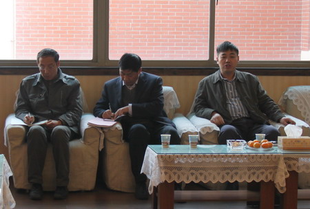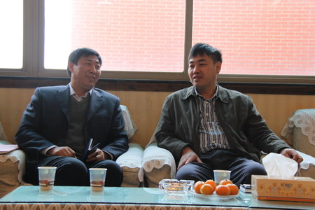 学院副院长董建国(右一)向客人介绍我院基本情况