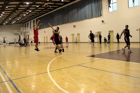 9月19日下午,我院教职工篮球队与湖南省水库移民管理局职工队在中医药大学体育馆进行了一场精彩的篮球友谊赛。水库移民管理局职工队由该局局长杨北伟带队,我院则由院长刘建湘带队,党委副书记龙承海、副院长刘继平、工会主席张志勇、院党校副校长陈方等领导轮番上阵,以球会友。