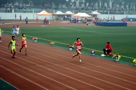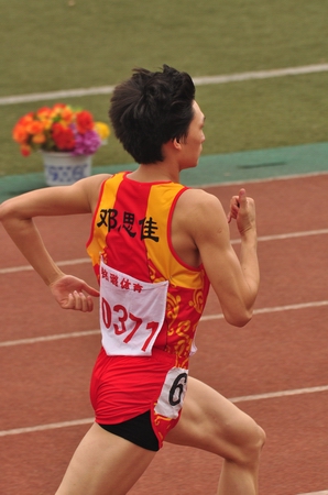 我院运动员邓思佳在400米决赛中遥遥领先,为我院再添一枚金牌
