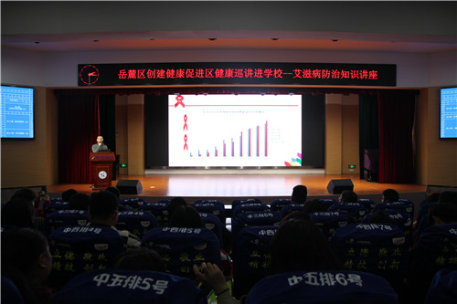 本网讯 12月3日下午,我校联合岳麓区健康促进委员会、岳麓区疾病预防控制中心、学士街道社区卫生服务中心,在大学生活动中心开展了一场“艾滋病防治知识”讲座,特邀长沙市疾病预防控制中心陈剑医生授课。各二级学院学生代表及辅导员400余人参加了学习。此次讲座由后勤处处长王世峰主持。