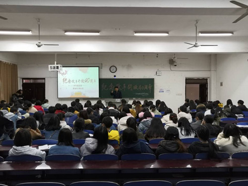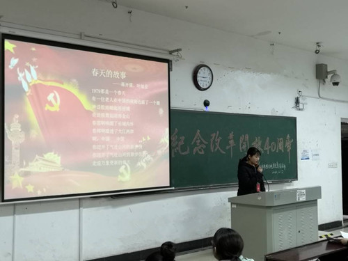 本网讯 12月5日,经济管理学院分党校、学生支部在1304教室开展纪念“改革开放四十周年”PPT宣讲比赛,25名学生参与了比赛,宣讲改革开放40年来取得的发展成就,抒发个人对改革开放的见解与感想。