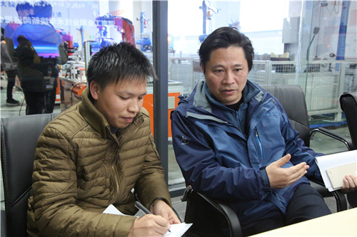 12月14日,我校智能制造实训中心总控室内格外热闹,由湖南省教育厅新闻中心率队组团前来的十多家媒体记者在此采访电子pg游戏平台下载服务湖南装备“走出去”海外人才培养培训情况。