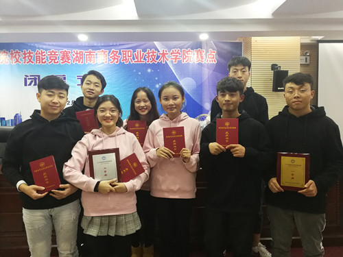 本网讯 12月22日,湖南省高职院校技能竞赛市场营销技能赛项比赛在湖南商务职业技术学院落下帷幕。由我校周朕、黄术芳担任指导老师,营销2017级何文、刘玄玄、曹华平、李文武、何淼、邹文和营销2018级冯琳煜、程群恩八位同学组成两支代表队参加该项比赛。同学们沉着冷静,稳定发挥,从31所高职院校、59支参赛队伍中脱颖而出,取得了一等奖和二等奖的好成绩。