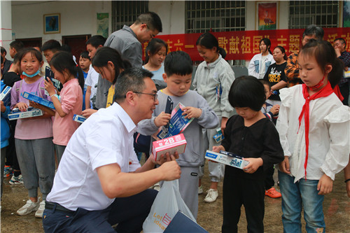 活动最后,驻村工作队员把学校工会和信息工程学院赠送的学习用品大礼包发放到儿童手中。
